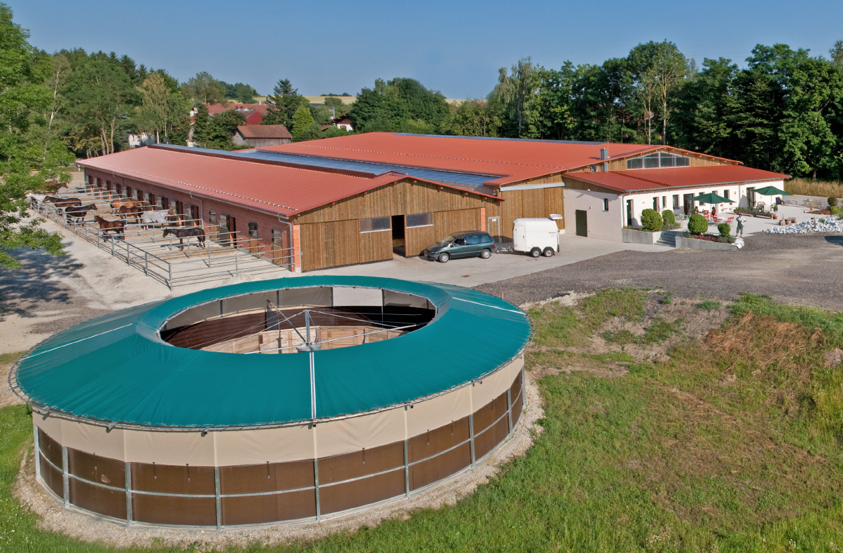 sind die Reithalle 50 x 25 m, der Pferdestall
